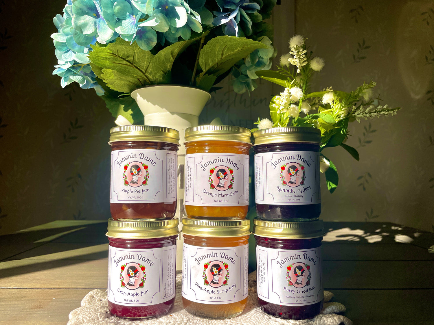 My husband and I moved out of the big city and into the country side of Tennessee in 2021. Once we settled in, we decided to start a small garden and fruit orchard on our property as a fun side project. I quickly realized that I found a new hobby I was passionate about and I wanted to share the fruits of our labor with our neighbors and community. I began searching for ways to do this and eventually came across some great homesteading videos one of which was teaching how to make jams, jellies and preserves. It caught my attention and I decided I wanted to give it a try. After completing a few small batches of jams my husband and I started sending them to friends and family as gifts. The feedback I received was both surprising and encouraging. Our friends enjoyed my first batch of jams and began suggesting that I try selling them at local farmers markets. Shortly after receiving their positive feedback I came across an inspirational quote that I love… As the queen of country Dolly Parton once said "You'll never do a whole lot unless you're brave enough to try." This quote along with the encouragement of our loved ones and community motivated me to start The Jammin Dame preserve company in the summer of 2022. We appreciate your support and welcome you to our Jammin Dame family!!